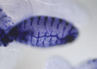 | stage13-16 | embryonic ventral epidermis embryonic/larval oenocyte embryonic/larval posterior spiracle embryonic dorsal epidermis embryonic/larval tracheal system embryonic head epidermis head epidermis dorsal embryonic epipharynx embryonic hypopharynx | can\'t distinuish tr. artifact from real expression in some tissues. From trachea only post. spiracle is real. Gene probably related to cuticle: denticle belt areas in ventral epidermis; something i | ||