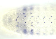 more expression in thoracic than abdominal segments; cloudy (in statu nascendi) expression in dorsal epi